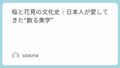 この一瞬の美を尊ぶ心こそ、日本人の「もののあはれ」の原点でしょう。
