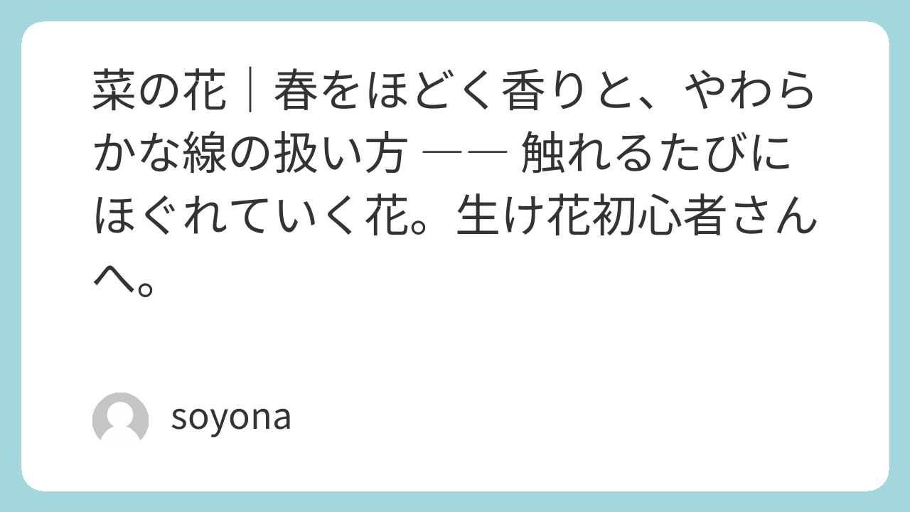 今年の春、ぜひ一度、菜の花とゆっくり向き合う時間をつくってみてください。