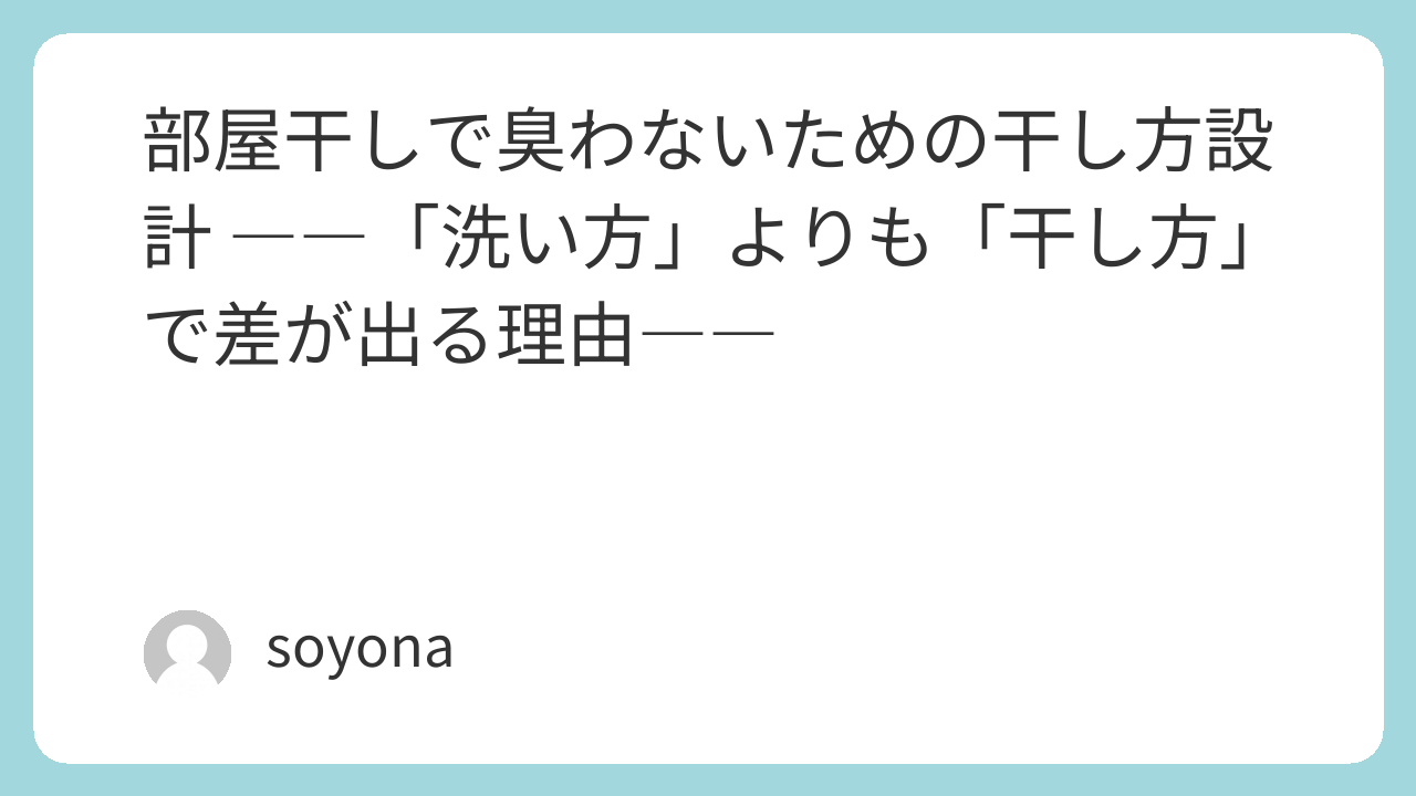部屋干しで臭いを感じると、洗剤の量や洗い方を疑いがちですが、必ずしもそれが原因とは限りません。同じ洗い方でも、干し方や乾燥環境が違えば、仕上がりの印象は変わります。
